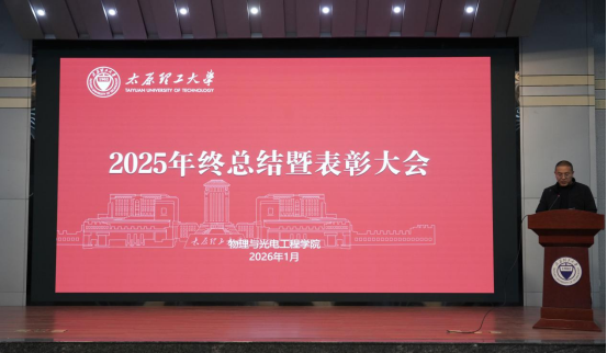 2026年1月23日下午,太原理工大学物理与光电工程学院2025年年终总结暨表彰大会在迎西校区思贤楼三层报告厅举行。学院领导班子成员与全体教职工齐聚一堂,共同回顾过去一年的发展历程,表彰在各项工作中涌现出的先进典型,展望未来奋进方向。会议由党委副书记李巍主持。